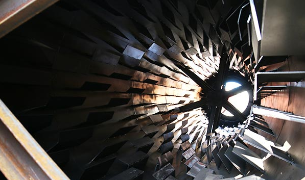 熱交換系統(tǒng):該部分即為烘干滾筒,烘干滾筒內(nèi)裝有揚(yáng)料板并且揚(yáng)料板交錯(cuò)排列成螺旋形,工作過程中,揚(yáng)料板反復(fù)揚(yáng)撒物料,使熱交換率高。